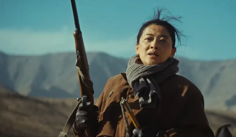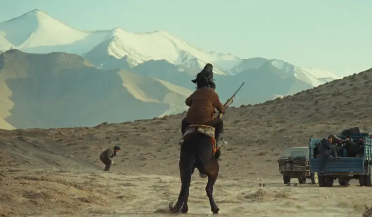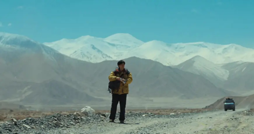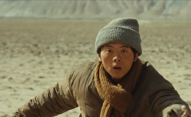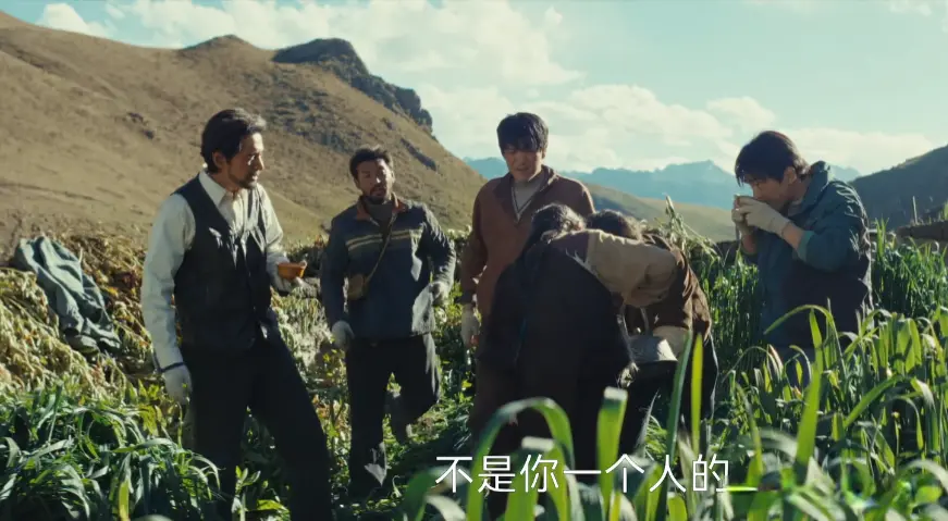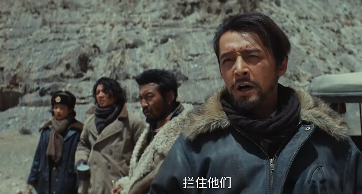 当多杰带着巡山队的成员,来到无人区,发现可疑车辆的桥段。