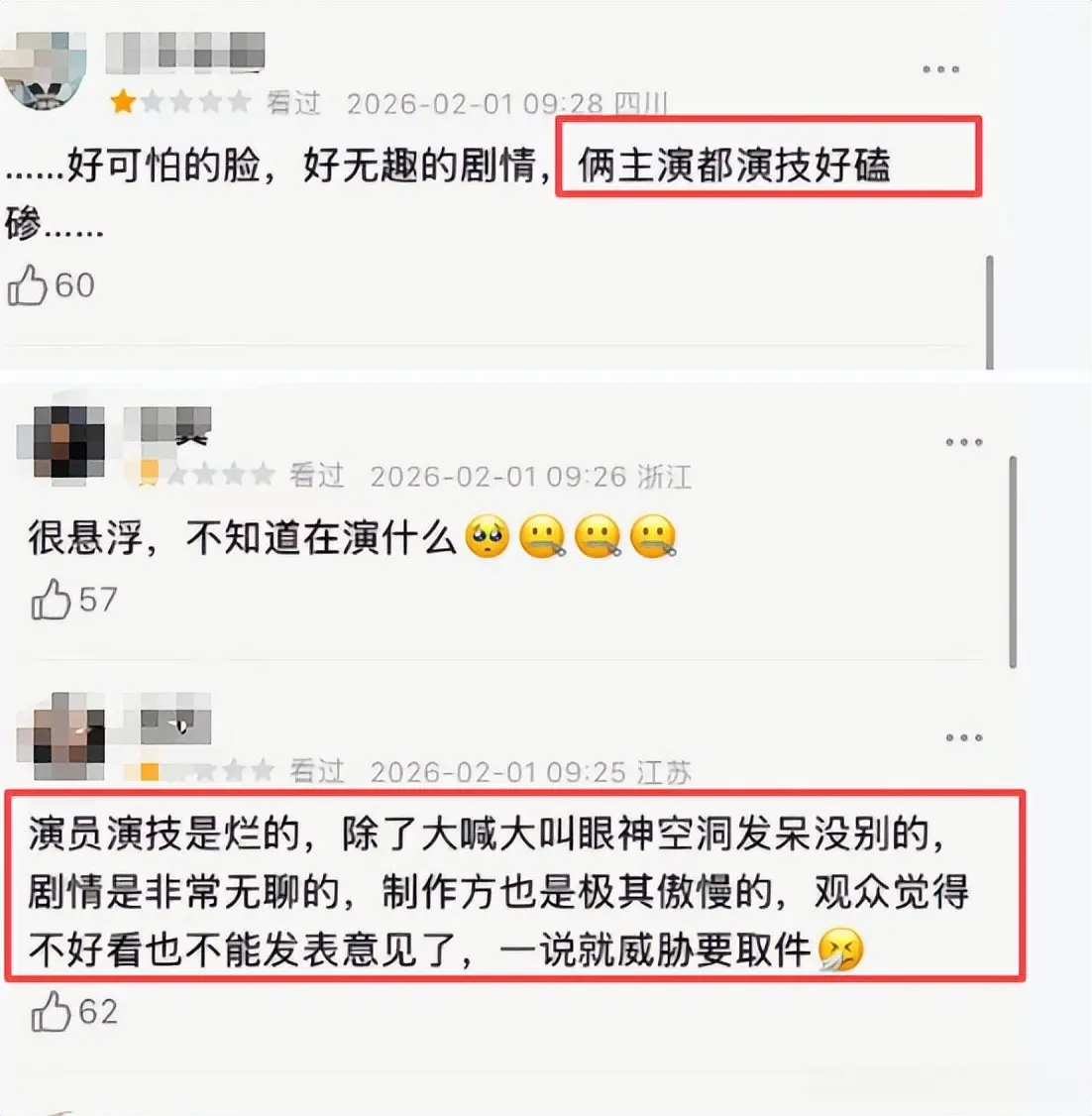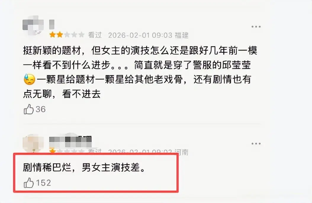 网友辣评道,两个主演演的好磕碜,悬浮的不知道在演啥。