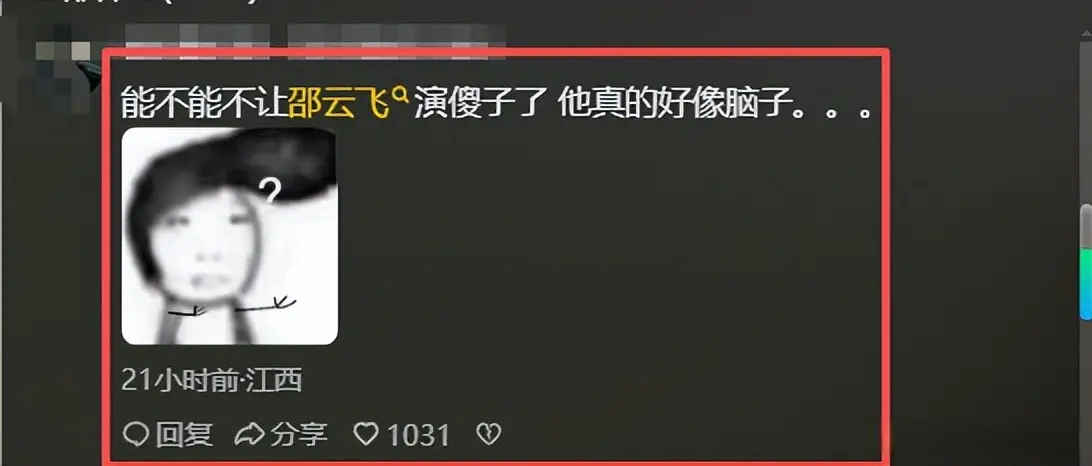 网友表示,能不能让邵云飞演傻子,他真的好像脑子有问题。