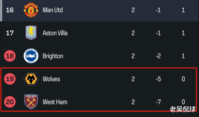 狼队大战铁锤帮,这是两轮过后英超垫底的两队之间的对话,说是“菜鸡互啄”也没毛病,毕竟他们是仅有的两支开局连败的球队。人家三支升班马全部都已经赢过球了,他俩还携手一分未得,狼队还是两支一球未进的球队之一(另一支是维拉),而西汉姆联则是丢球最多的球队,两场丢了8球,没有之一。