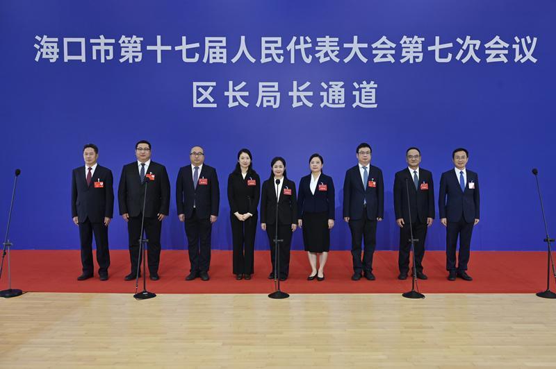 海口市第十七届人大七次会议“区长局长通道”现场。海口融媒体中心供图