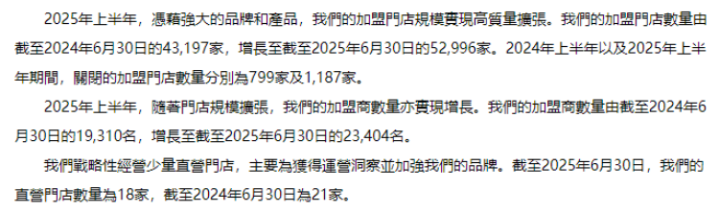 蜜雪集团2025半年报显示,门店层面,截至2025年6月30日,全球门店数增至53014家,较去年同期新增9796家门店,门店网络覆盖中国及12个海外国家。