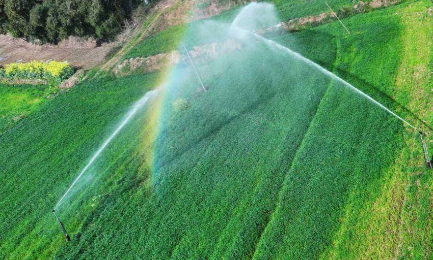 正在作业的智能喷灌系统。张隽翊摄近日,资阳市乐至县石佛镇金山寺村,春风拂过麦田,绿浪翻滚、生机盎然。田埂旁不见传统粪肥堆沤,取而代之的是匀速运转的智能喷灌系统。在乐至县绿洲农牧科技有限责任公司种养循环基地,一场以“牛粪”育“麦苗”的绿色变革,正悄然铺展。