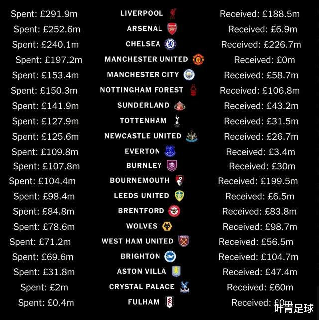 2025年夏窗股票配资推荐,英超诸强不断招兵买马,扩充实力。8月26日,深度媒体The Athletic统计各队收支情况:12支球队投入超过1亿英镑,但有1队仅投入40万英镑,成为英超另类。
