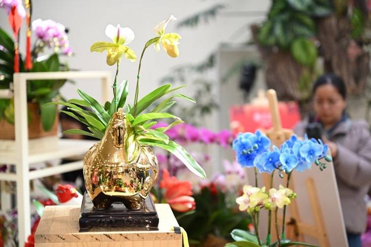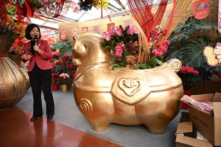 北京花乡花木集团有限公司董事长林巧玲表示,今年的花卉品类非常丰富,汇聚了全国八大花卉主产区特色品种,如贵州的高山杜鹃、山东的牡丹、福建的水仙,以及来自天津、河北等地的花卉,如河北的海棠、天津的宝莲灯,均可在市场中找到,展现出京津冀地区的产销联动。此外,商家还特别推出以马为造型的花盆与花器,进一步增添了节日氛围。