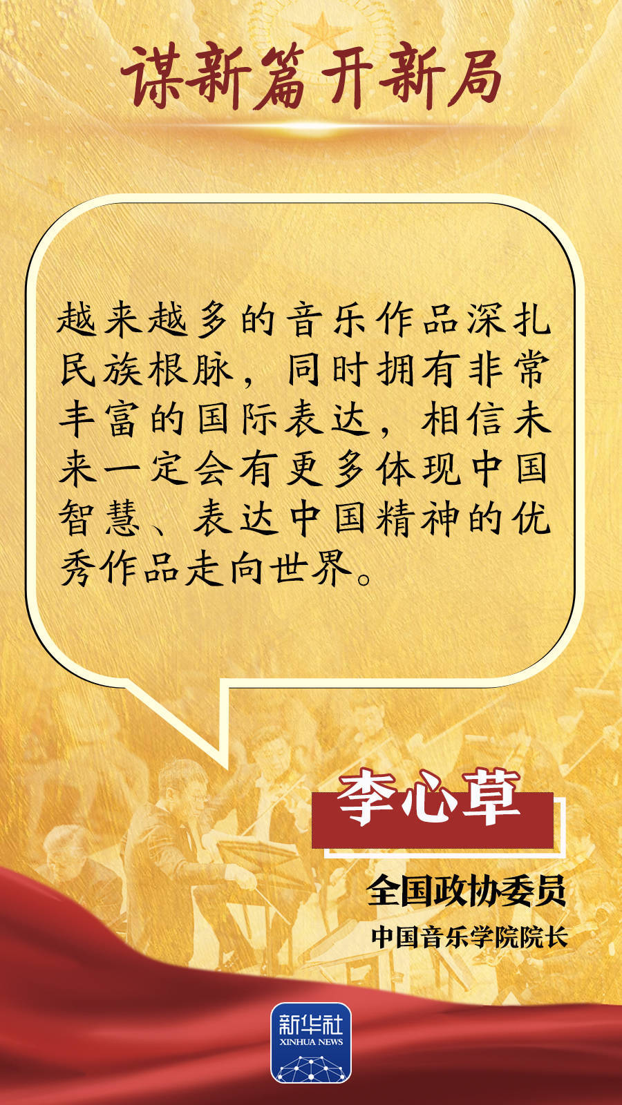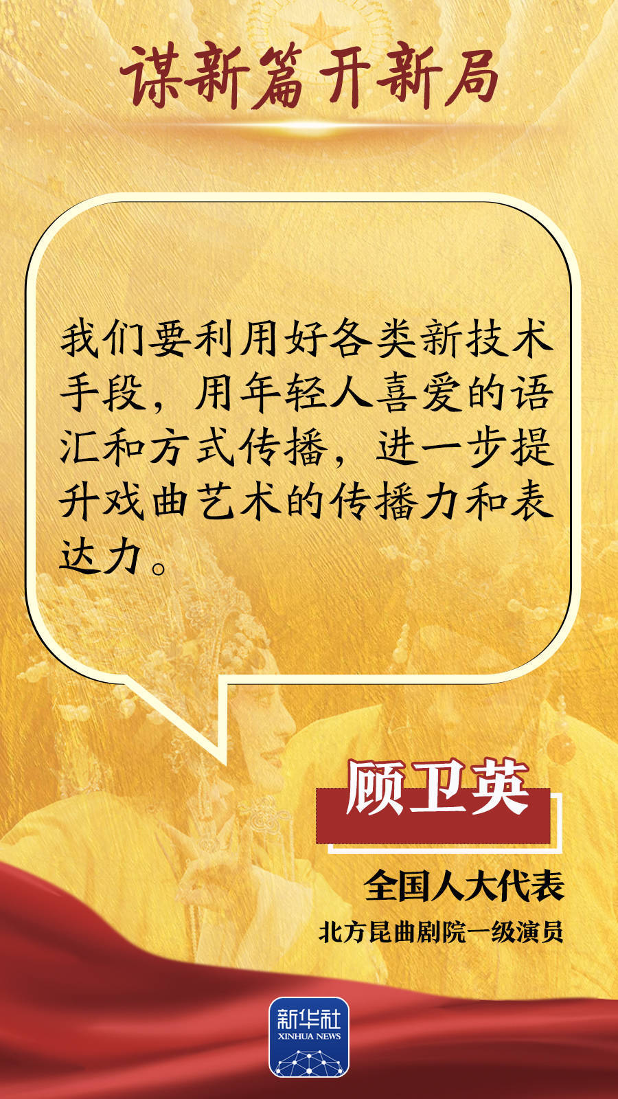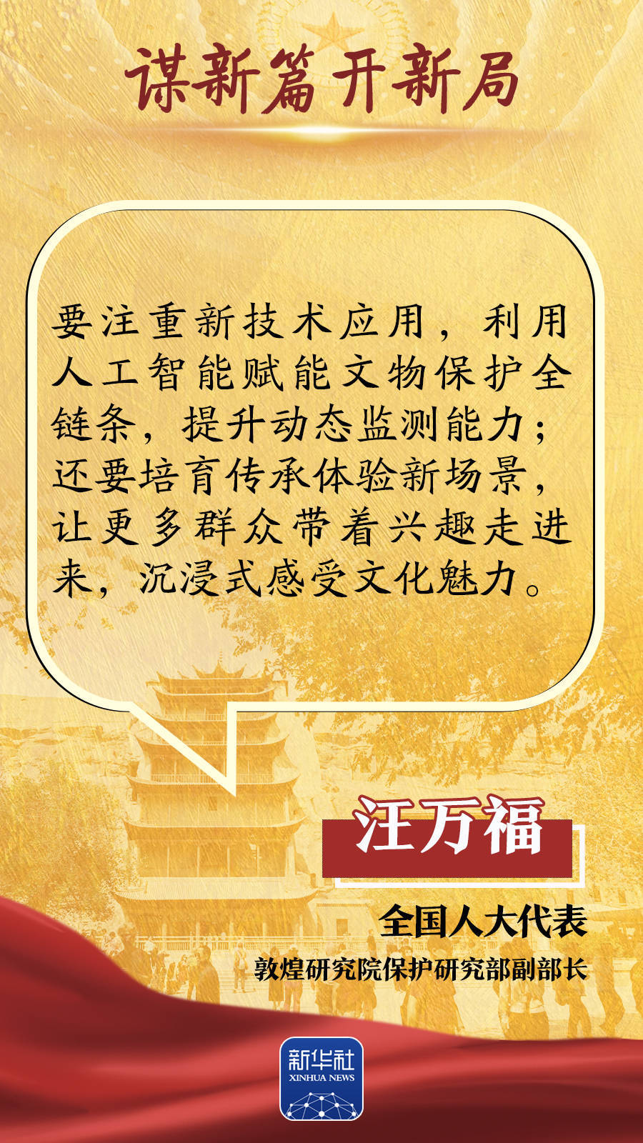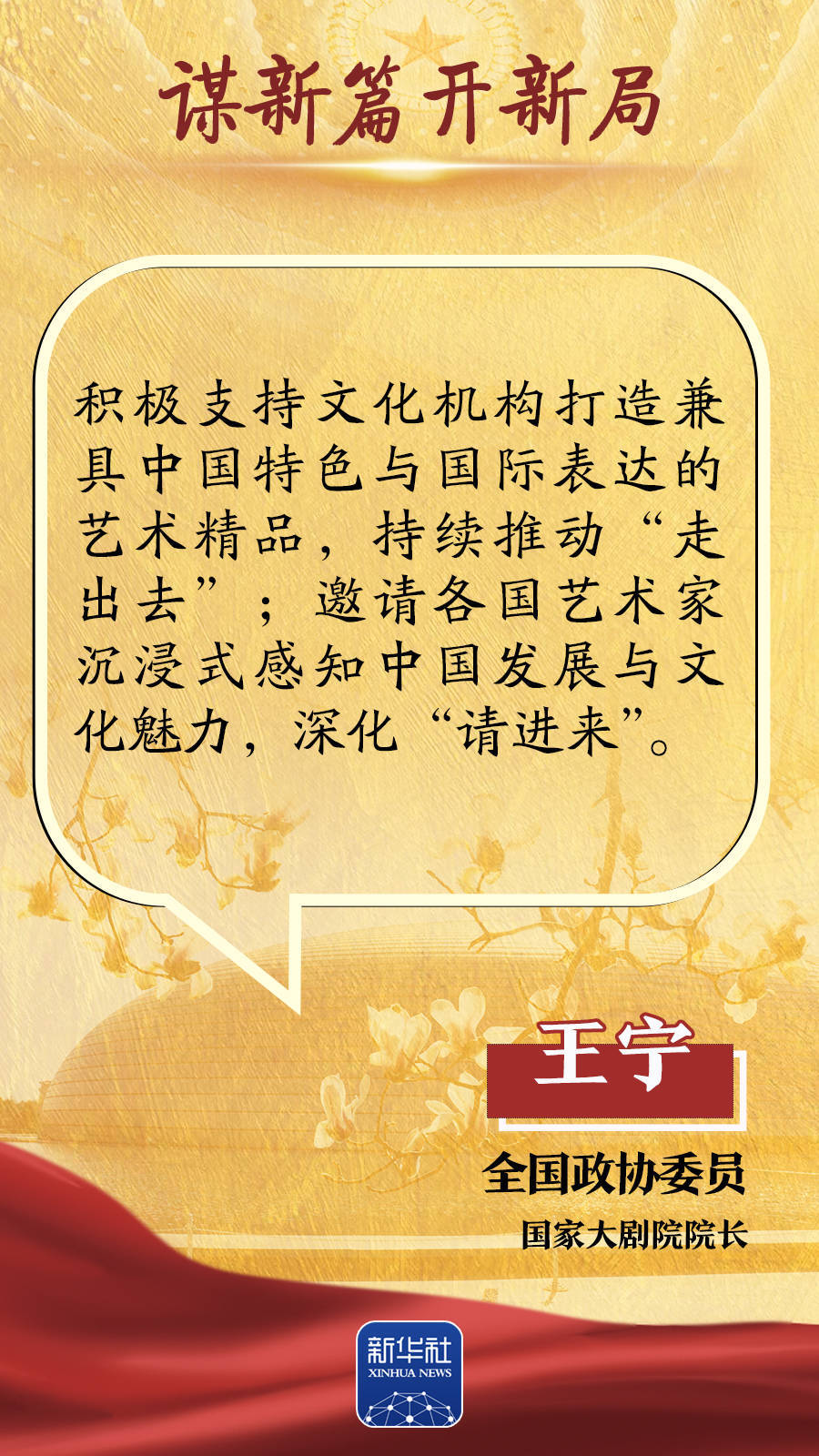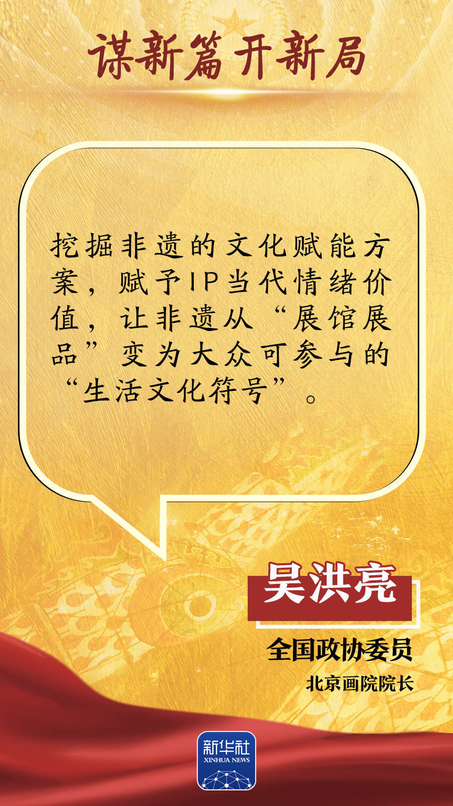 “繁荣互联网条件下新大众文艺”首次写入政府工作报告,也成为代表委员热议的话题。“人工智能重塑文化创作生态”“多元文旅业态蓬勃发展”等话题引发持续关注。如何繁荣新大众文艺,更好满足人民群众精神文化需求?中华文化怎样才能更好地走向世界?如何创新文旅业态,助推高质量发展?跟随这组海报,聆听两会声音。