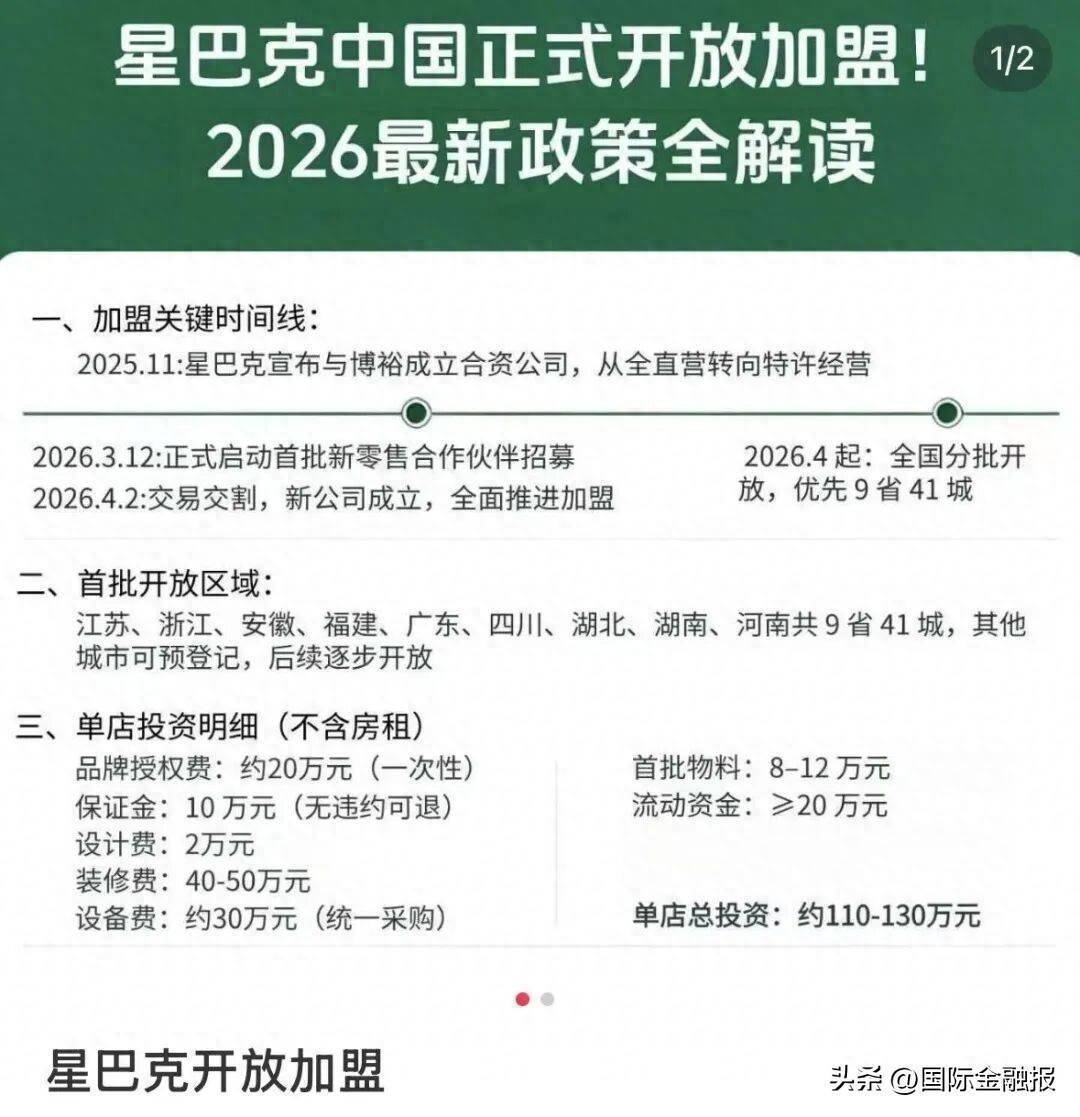4月21日,网络上流传出一张内容为“星巴克中国2026加盟政策全解读”的图片。