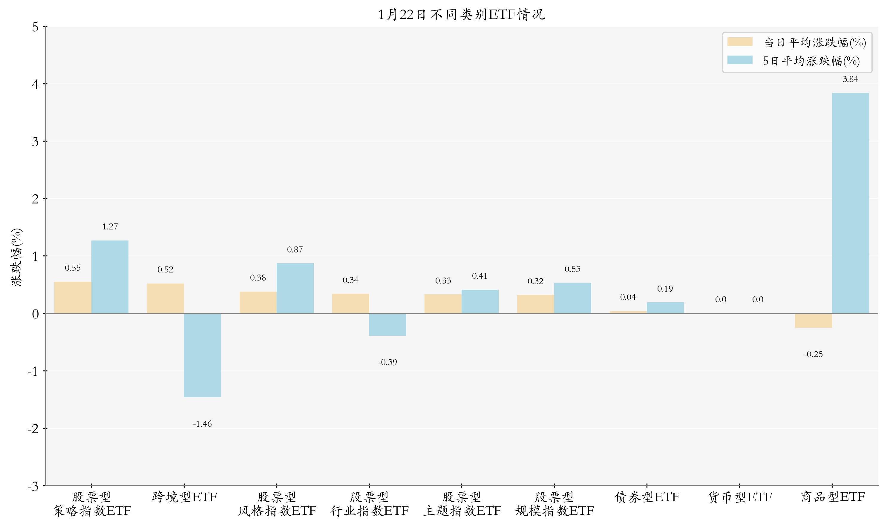 根据ETF基金的规模和涨跌幅计算得出不同分类情况下各类ETF基金的平均涨跌幅。